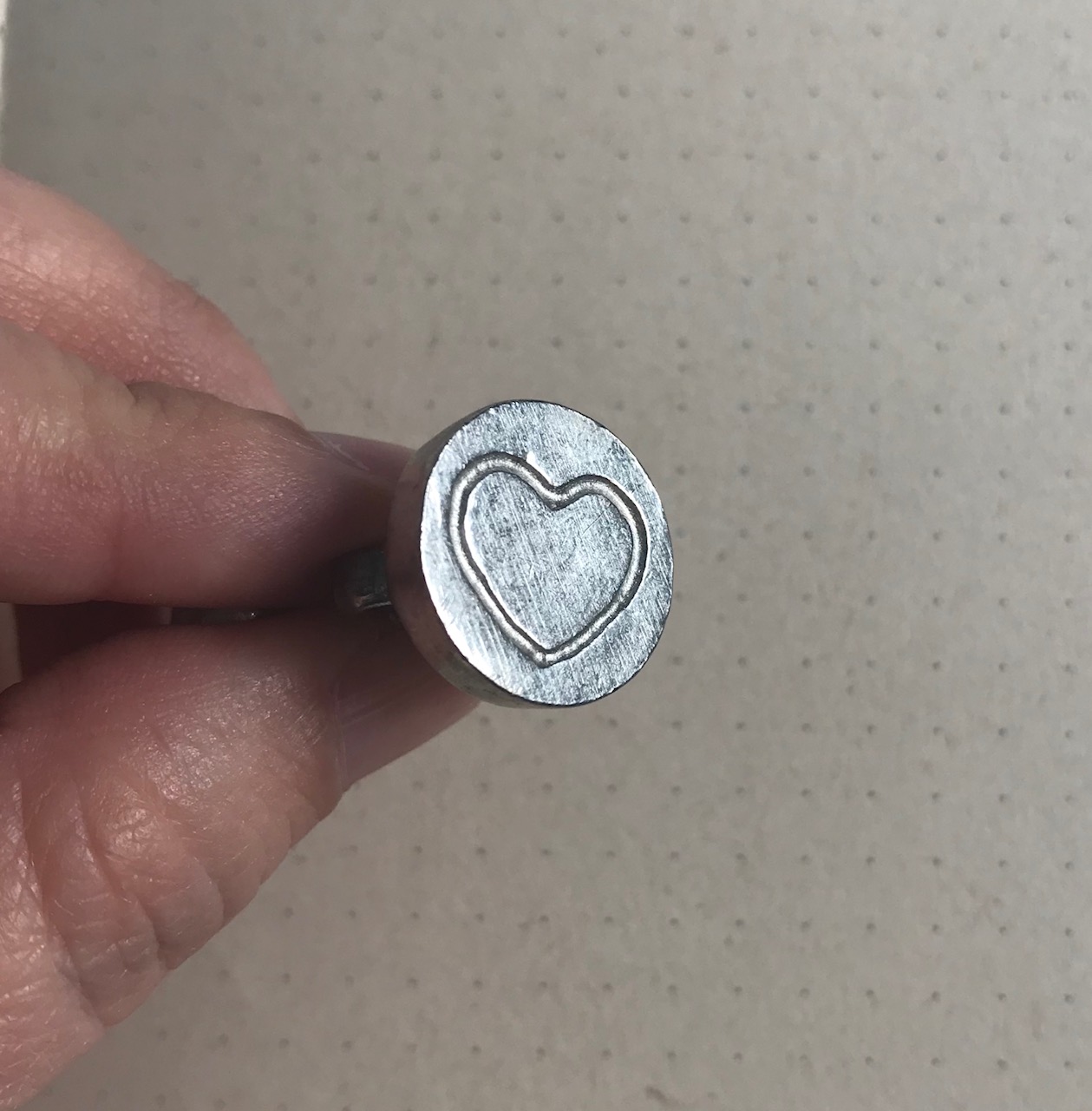 Sello metálico de 2 cm de diámetro para lacre o cera. Acento para sobres, tarjetas, empaques y demás proyectos de diseño